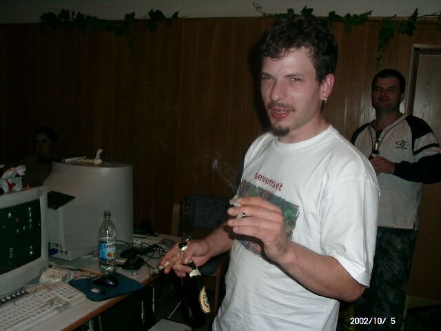 Mit Bierflasche in der rechten und einer Zigarette in jeder Hand kann er sich nicht wehren...
